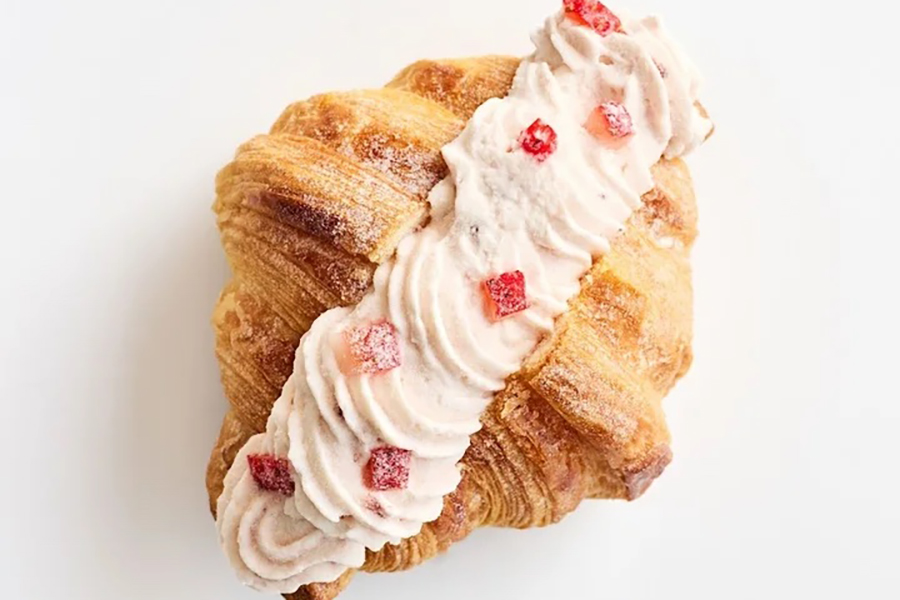 店頭では通常サイズのクロワッサン(320円)をはじめ、プティサイズのクロワッサン(68円〜)、あんこバター(480円)や生ハム入りの食事系クロワッサンサンド(580円)まで登場する。また龍の卵とジャージー牛乳のプリン(380円)や北海道バターとラムレーズンのフィナンシェ(260円)なども多彩に。