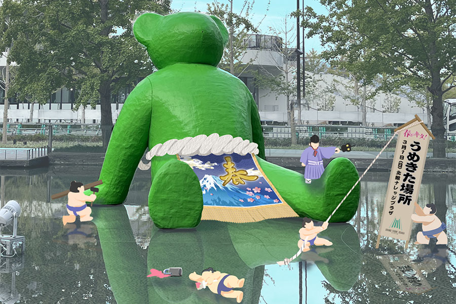 また今年より「インバウンド向けの招待席」を新設。相撲を通じた日本文化を発信していく狙いだという。さらに「うめきた広場」では、相撲に欠かせないグルメ「ちゃんこ」を販売し、梅田のシンボルオブジェ「テッド・イベール」も力士姿になり、一帯が相撲モード一色となる。