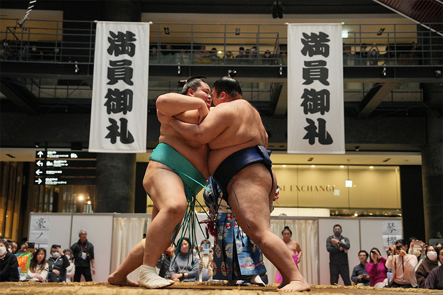 力士の取組が間近で…大阪の商業施設「グランフロント大阪」(大阪市北区)恒例の相撲イベント「うめきた場所」が3月1日に開催される。今年で6回目となり、昨年は事前応募の一般観覧席の当選倍率が約50倍、約3000人が来場した人気催事だ。