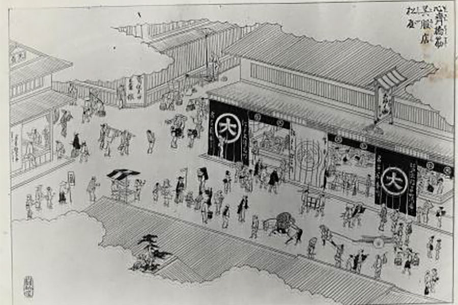 1726年(享保11年)に現在の大阪・心斎橋に出店した同百貨店。現在の心斎橋筋と清水町通り交差点の北西側に、間口一間の呉服店「松屋」を開き、当時呉服商で一般的だった掛売ではなく、現金正札販売を始めた。