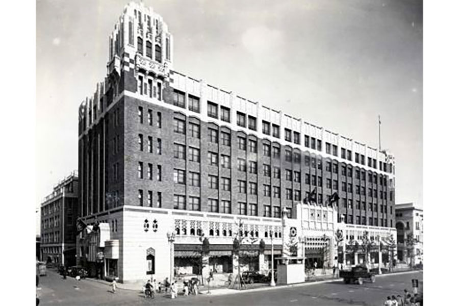 そして1933年(昭和8年)、大大阪時代のランドマーク、1万2500坪の大丸ブロックが竣工。建築家ヴォーリズが設計した館が1918年に開業するも、2年足らずで失火により焼失。再起をかけ、1922年より約11年・第4期にわたる工事が完了し、御堂筋の拡幅と地下鉄開通に合わせオープンした。翌年の1934年には、当時として画期的な「全館冷暖房」を導入。