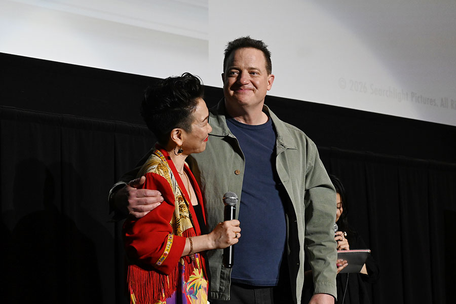 • 映画『レンタル・ファミリー』の舞台挨拶に登場したHIKARI監督とブレンダン・フレイザー(2月5日・大阪市内)