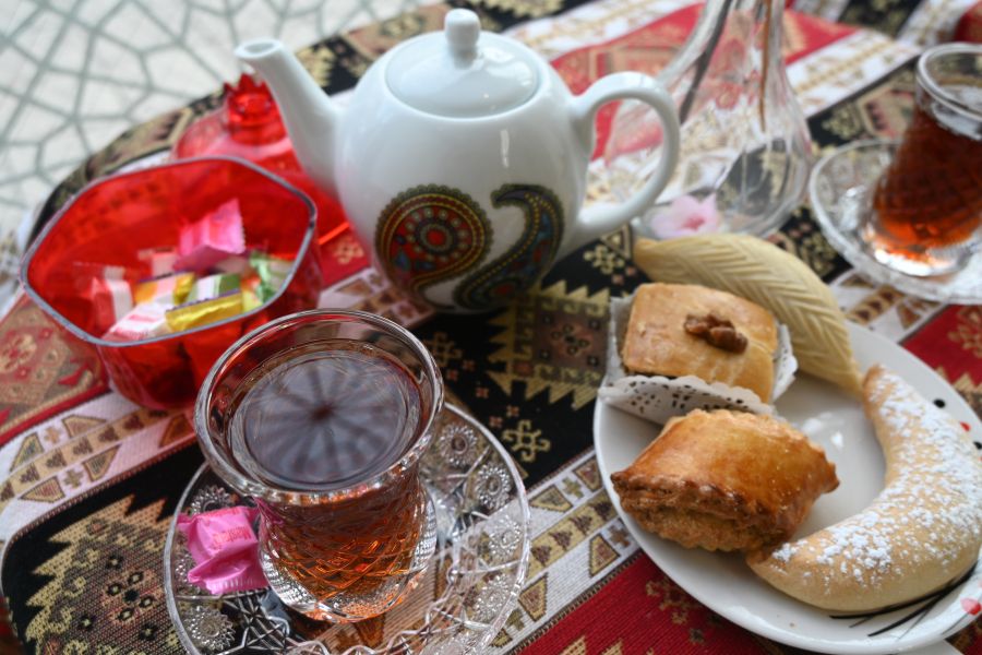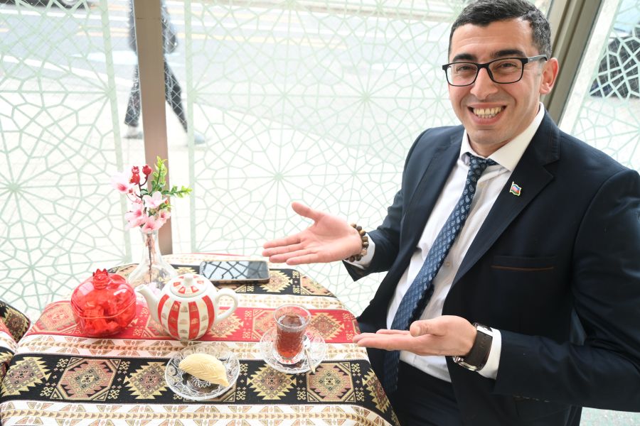 「そんな日本の人たちと、母国アゼルバイジャンをつなぐ拠点を作りたい」そう考えたのは、「アゼルバイジャン・パビリオン」のオペレーションマネジャーとして万博会場で勤務していたガハラマンさん。万博開催中からの構想が、2月6日ついに実現。アゼルバイジャンのお茶とスイーツが楽しめる「ざくろの木」という名前のお店を「天神橋筋六丁目駅」すぐの場所にオープンした。