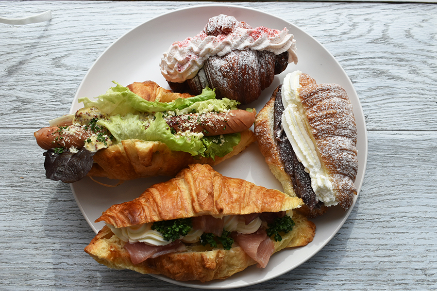 スイーツ系や食事系、さまざまなクロワッサン。フレンチの技法を使ったクロワッサンが、リーズナブルに楽しめる