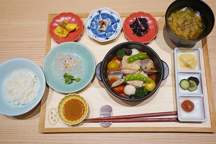 「象印食堂」は、同社の高級炊飯器「炎舞炊き」で炊いたご飯と、そのおいしさを際立てるおかずを食べられるレストラン。ランチ2100円〜と、決して安くはない値段ながらも、すでにある大阪・なんばの「大阪本店」、東京・丸の内の「東京店」の2店舗では連日行列。11時の開店時点で、20組待ちのこともある。