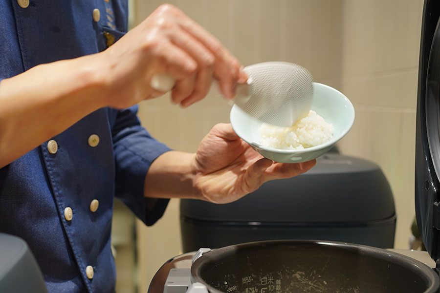 「象印食堂」担当の樺山さんによると、高級炊飯器「炎舞炊き」では、事前の浸水時間ゼロで、誰でももっちりした玄米を炊くことができるという。炊飯工程に浸水が含まれているため、スイッチを押すだけで、家庭でも再現できる。