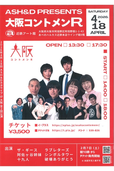 • 4月18日開催の「ASH&D事務所ライブ 大阪コントメンR」