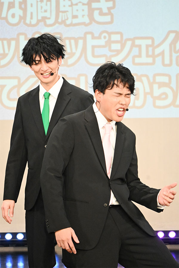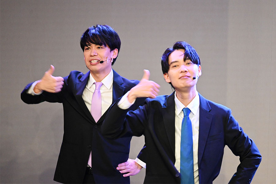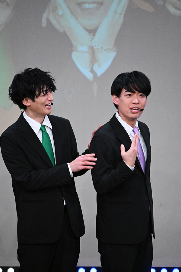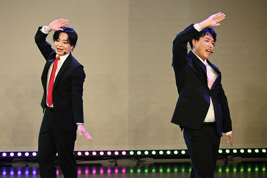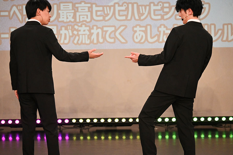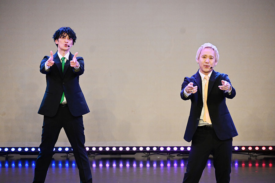この日のチケットは完売。普段は漫才師として活躍する彼らだが、漫烈ではあくまでアイドルということで、プロによるメイクとスタイリングを施された、仕上がったビジュアルで登場。さらにメンバーカラーやニックネーム、アイドル活動用の宣材写真まで用意する本気っぷりを見せた。