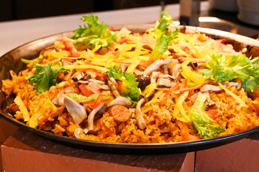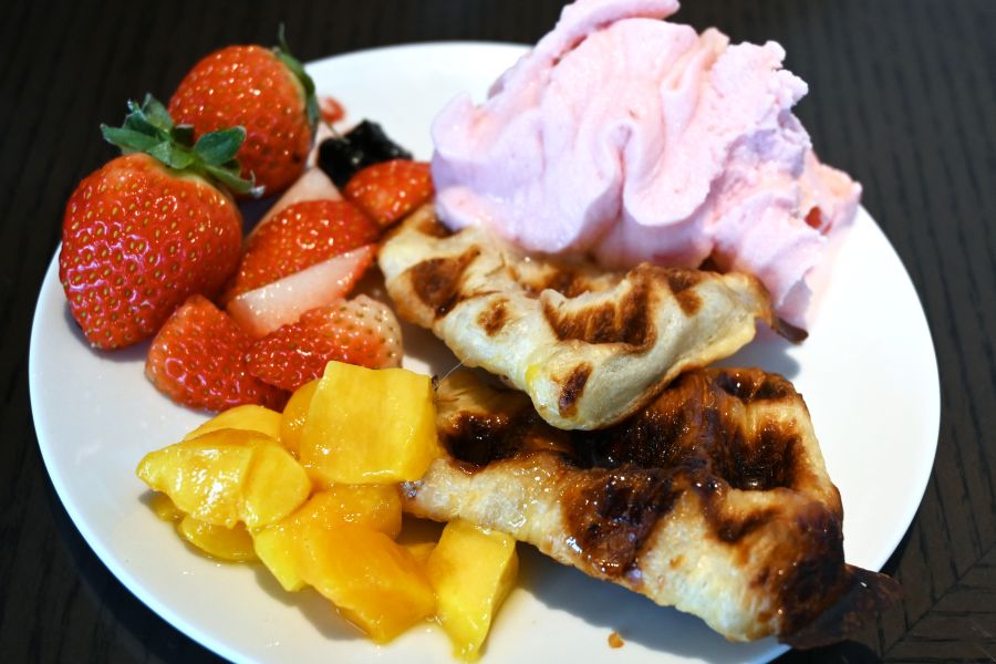 韓国料理だけでなく、根強いファンが多い同ホテル人気の「国産牛ローストビーフ」もその場でカットして提供してくれるのでお忘れなく。ほっこり温まる「ほうれん草とポテトのグラタン」や季節ごとに変わる焼きたて自家製パンも楽しんで。今回は、韓国料理のテーマに合わせた「韓国のりフォカッチャ」と、タイムやローズマリーなどの「ハーブバケット」が、保温カゴに入れられて各テーブルにサーブされる。