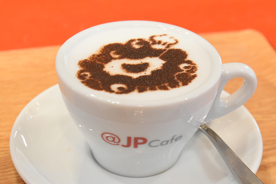 イートインの場合、ドリンクはココアパウダーで仕上げたブラウンのミャクミャクが特徴的な「ミャクミャクチーノ」やオレンジジュース、紅茶などから選べ、カフェ仕様のミャクミャクコースターも特典としてついている(無くなり次第終了)。