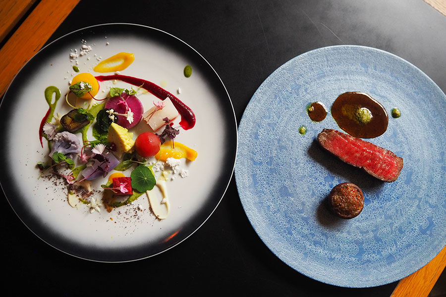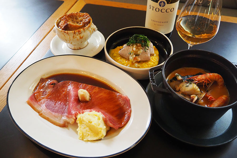 料理は洋食ビストロを軸に、一部のメニューは大阪を代表するシェフとのコラボを展開。オープン時には、大阪・福島の人気イタリアン「La Lucciola」のオーナーシェフ鈴木浩治氏によるプロデュースメニュー、6月からは日本料理「翠 大屋」とコラボ予定で、約3カ月毎に趣向を変えた料理が登場するのも魅力だ。