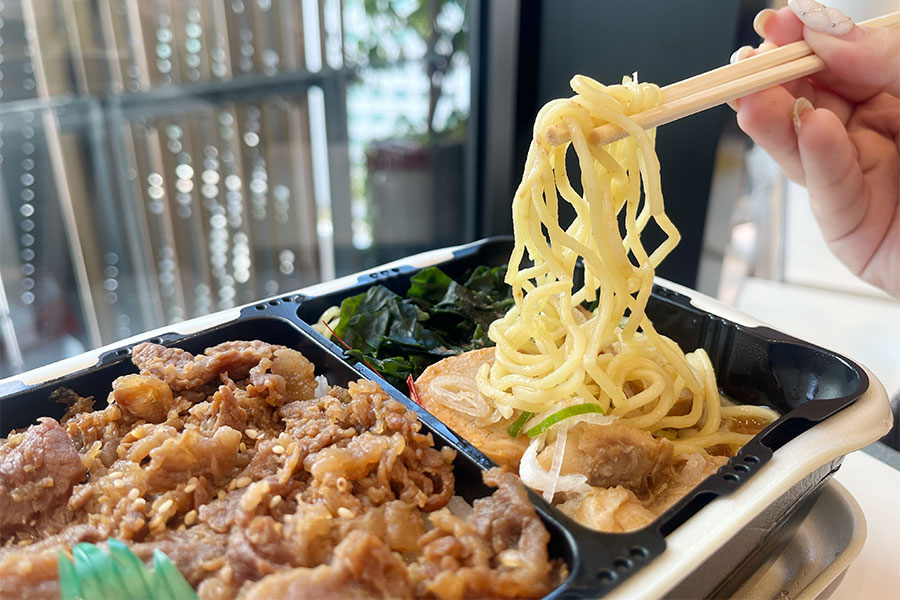 • 「しまだフーズ」の「常陸牛牛べんとあんこう味噌ラーメン」(1680円)茨城県/常磐線(Lmaga.jp撮影)