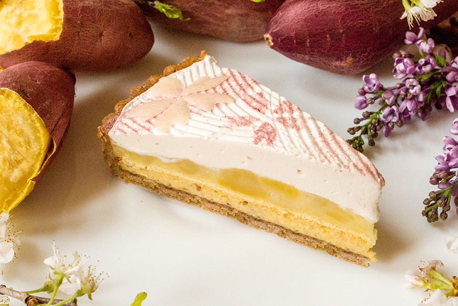 • 「徳島県里浦産なると金時 “里むすめ”と胡麻のタルト」(1ピース993円、ホール25cm9936円)。販売期間は2月19日~4月14日
