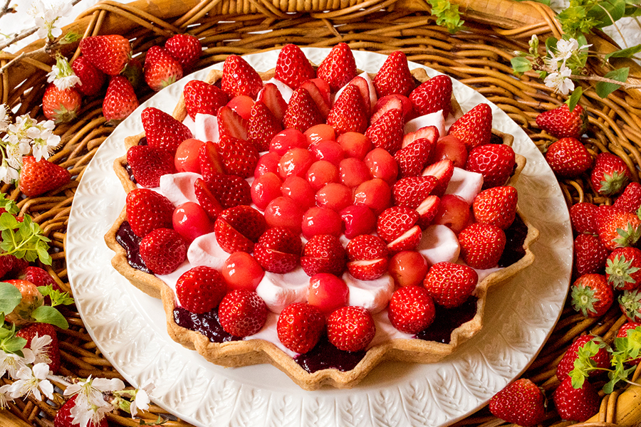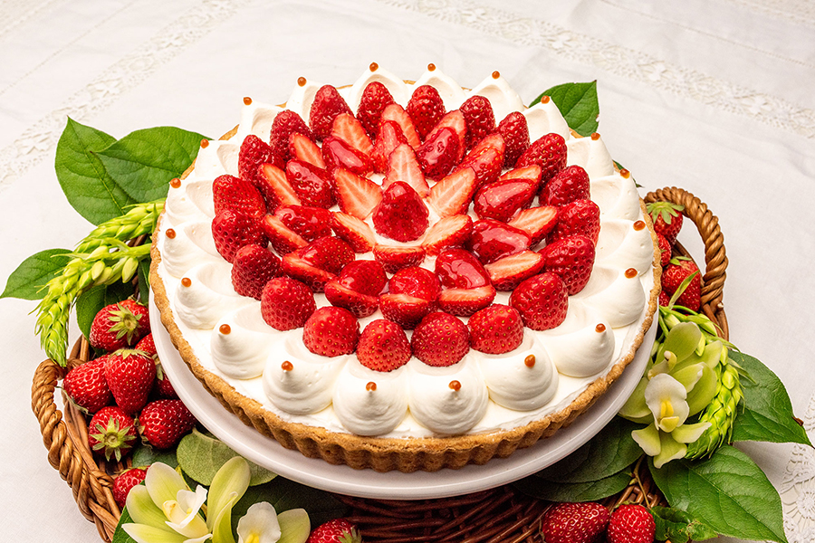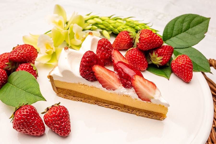 • 「イチゴとカスタードプリンのタルト」(1ピース1090円、ホール25cm1万908円)。販売期間は2月19日~3月31日