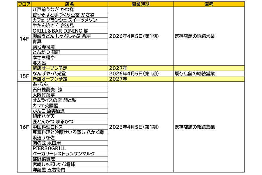 • 「LUCUA SOUTH DINING」 (14F~16F)