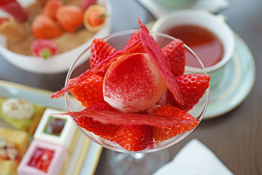 「エレガンス・イン・ストロベリーブルーム」は、2月1日〜4月上旬まで、28〜29階ラウンジ&バー「ピーコック・アレー」にて開催。時間は11時30分〜22時まで。料金は1万2000円で、オプションでパフェ、スープを付けると1万6000円。詳細は公式サイトにて。