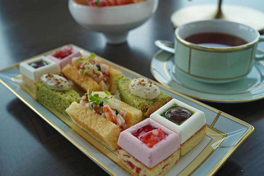 メニューの半分をセイボリーが占め、一般的なアフタヌーンティーよりも種類が多い。そして、高価格帯を裏切らない“豪華食材”が盛り込まれている。
