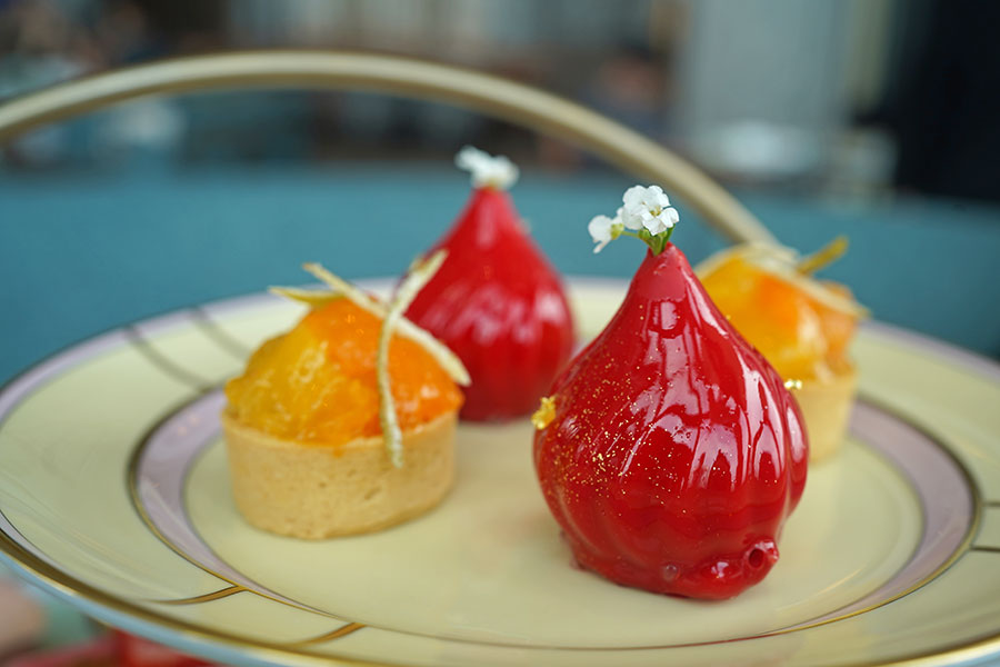 また、食べきれず残してしまうこともあるスコーンにも、スイーツ同等のこだわりがある。通常スコーンは、クロテッドクリームとジャムを付けながら食べるが、同ホテルではスコーン、バター、ジャムが三位一体となった、ケーキのような見た目になっている。