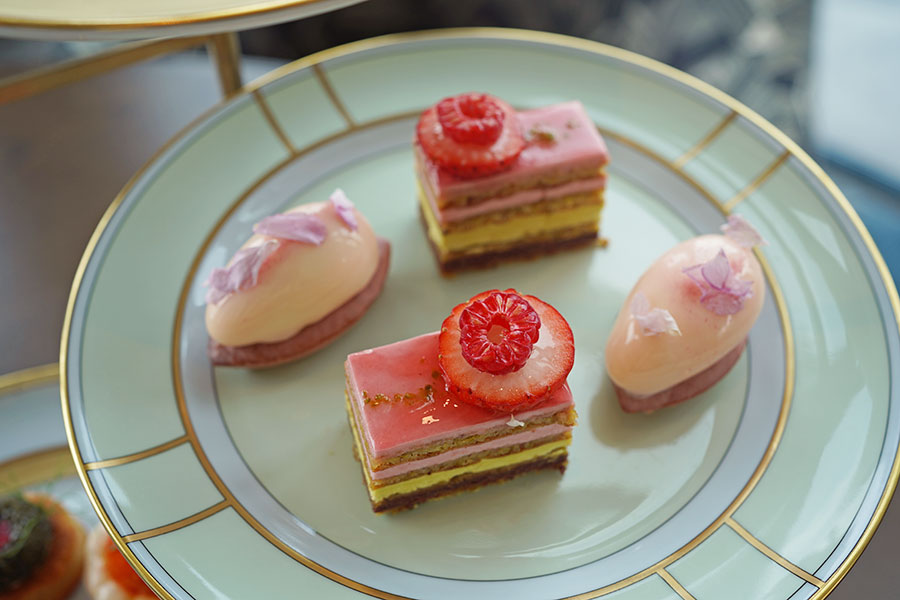 ホテル「ウォルドーフ・アストリア大阪」(大阪市北区)で4月上旬まで開催中のアフタヌーンティー「エレガンス・イン・ストロベリーブルーム」(2月10日撮影/Lmaga.jp編集部)