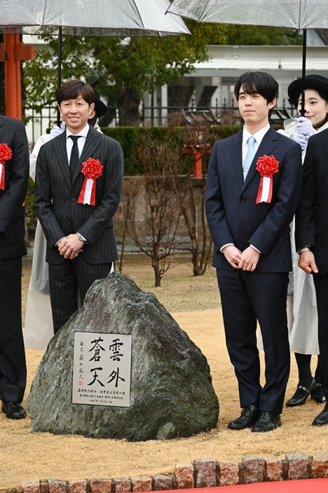 藤井竜王は「この度はこのような素晴らしい記念碑を建立いただき、誠にありがとうございます。このような記念碑に恥じないよう、私自身もより一層精進し、100年後にも残るような対局を残せるように、より一層取り組んでいきたいと思っています」とコメントした。