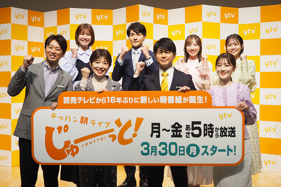 「読売テレビ放送」(大阪市中央区)では3月30日より、2010年3月放送開始の「朝生ワイド す・またん!」以来16年ぶりとなる朝の新番組『テッパン朝ライブ じゅーっと!』の放送を開始。2月25...