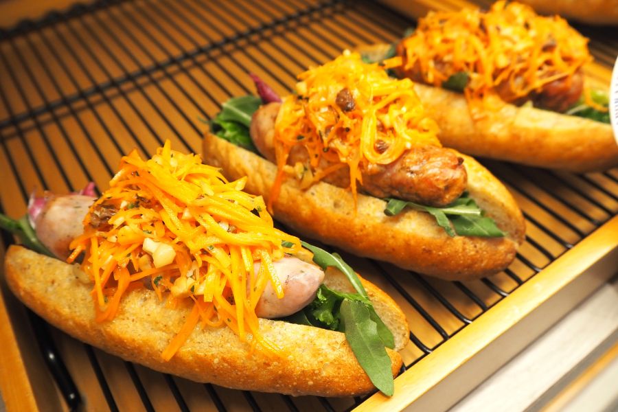 • 総本店限定のレストラン「ami 神戸」とのコラボサンドイッチ、「神戸ポークソーセージ&ハニーマスタードキャロット」(842円)「ル・パン総本店」