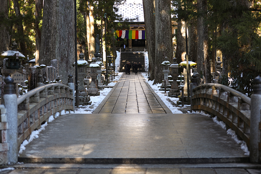 弘法大師・空海の御廟がある場所で、高野山における信仰の中心、奥之院。弘法大師は62歳でこの地に入定し、以来1200年にわたってこの地で永遠の瞑想を続けていると信じられています。