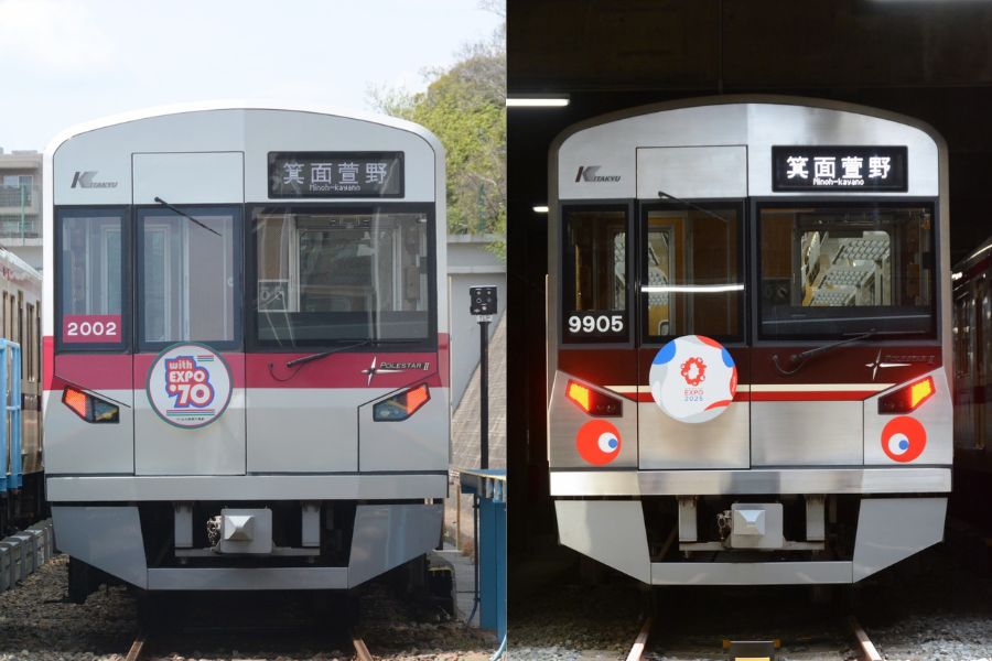 ヘッドマークとは、列車の先頭車両に掲げられる、イラストや文字などが描かれた看板のこと。特急列車の愛称がデザインされたもののほか、季節やイベント、周年記念など、各鉄道会社が特別なタイミングで用意するものもあり、鉄道ファンらからも注目を集めている。「北大阪急行電鉄」(以下:北急)では、昨年「北急タイムトリッププロジェクト」として、『大阪・関西万博』開催を記念した「万博ラッピング列車」を運行し、特別なヘッドマークを掲出した。