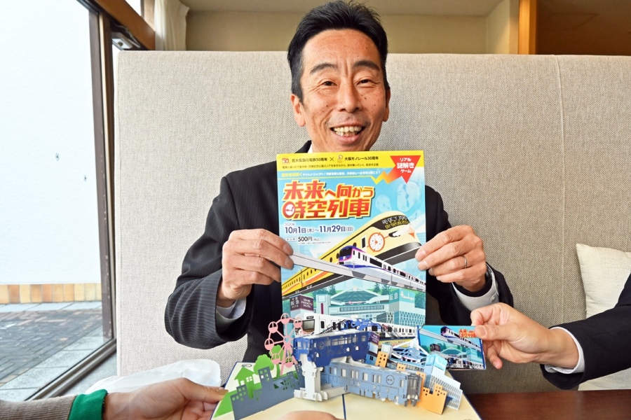 同じ年の10月には、「北急」50周年と「大阪モノレール」30周年を記念した謎解きイベント『未来へ向かう時空列車』を開催。その際は、ホテル西館の壁面の装飾についての問題を出題、という形で再びコラボレーションが実現した。さらに、「謎解きが楽しめるお楽しみ宿泊プラン」を用意した他、「宿泊のお客様に楽しんでいただくオプション」として謎解きキットをフロントにて販売するなどの協力も。