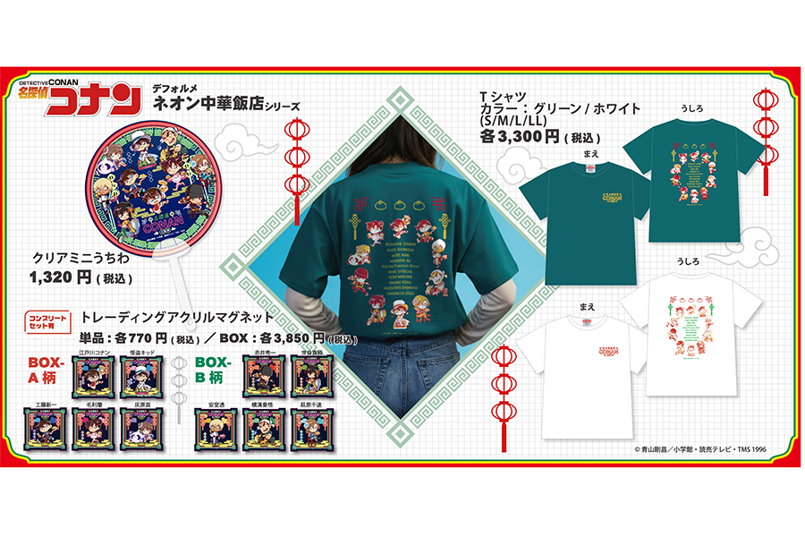 • 『名探偵コナン大阪城本陣SPECIAL SHOP』(場所:ミライザ大阪城)で発売される「クリアミニうちわ」(1320円)、「トレーディングアクリルマグネット」(単品 各770円/BOX 3850円)、「Tシャツ」(各3300円)