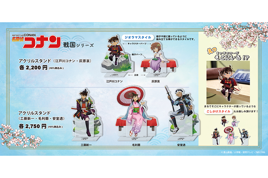 • 『名探偵コナン大阪城本陣SPECIAL SHOP』で発売されるアクリルスタンド(江戸川コナン・灰原哀/各2200円、工藤新一・毛利蘭・安室透/各2750円)
