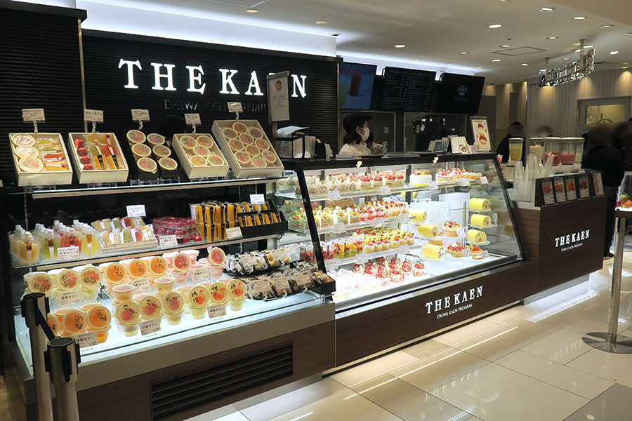 高級フルーツを気軽に味わえるスイーツ店「THE KAEN(ザ・カエン)」が3月1日、JR大阪駅直結の百貨店「大丸梅田店」にオープン。持ち帰り用のケーキのほか、その場で味わえるパフェやジュー...