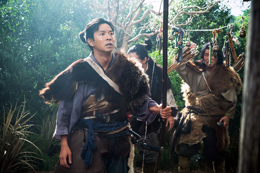 • 『豊臣兄弟!』第9回より。猟師の格好で山中を歩く小一郎(仲野太賀)たち(C)NHK
