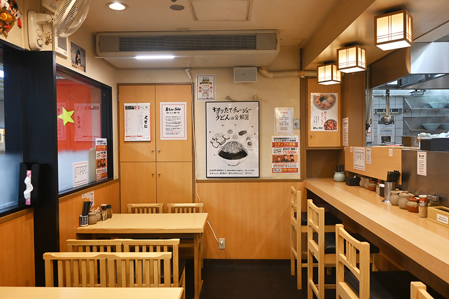 そもそも東京で『~ちゃん』『~ちん』という名前のラーメン店が多くあり、豚清湯・切り立てチャーシュー・多加水麺が特徴で「ちゃん系ラーメン」と呼ばれているのだが、その系統の店を始めようとしていたという。ところが父・春世さんが「同じビルに同じ料理(ラーメン)の店を出すのはアカン。昔からの信頼関係が壊れてしまう」と猛反対。とはいえ本店の目の前にうどん店を出すのも無理となって悩んだ末に生まれたのが「うどん(麺)とラーメン(スープ)を合わせた新しい味の麺」として開発された。