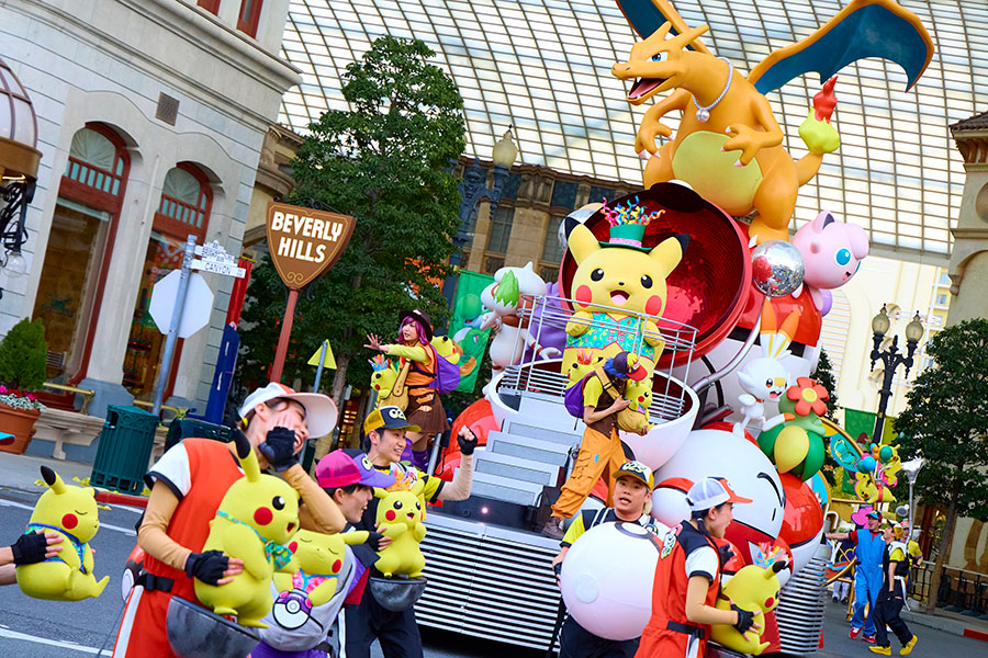 • 『NO LIMIT! パレード ~Discover U!!! バージョン~』の様子。プリンの姿が確認できる(反対側にモクロー)写真提供:ユニバーサル・スタジオ・ジャパン