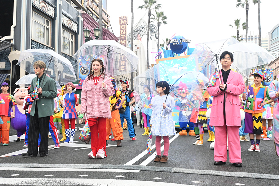 • 左からUSJの開業25周年を記念した期間限定イベントに登場した森崎ウィン、仲里依紗、永尾柚乃、千葉雄大(3月3日・Lmaga.jp撮影)