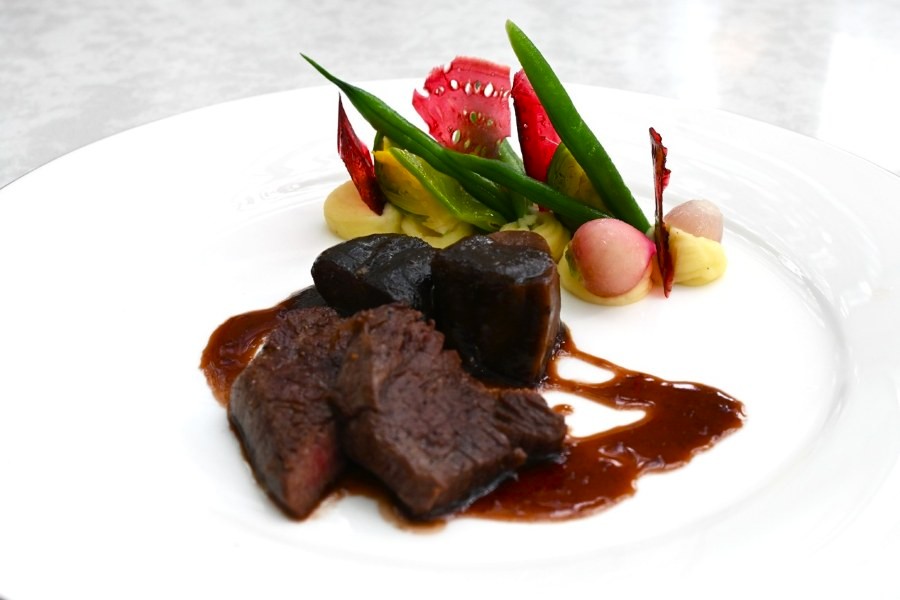 またメインはどちらにも、キャラメリゼされたビーツ、アスパラやインゲンがまるで立ち上がるかのように添えられていて、斬新な見た目も楽しい。