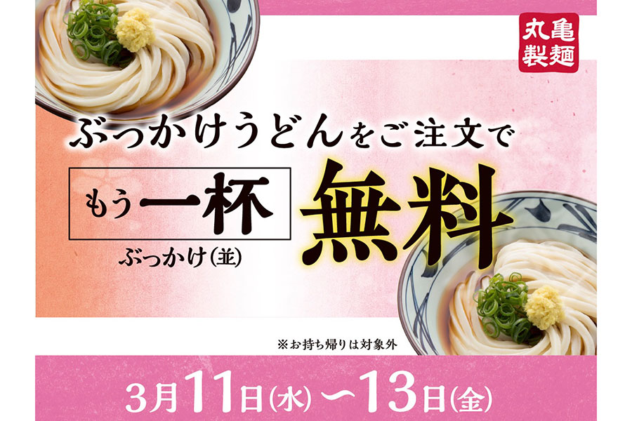 • 丸亀製麺で「1杯注文すると1杯無料」になる企画を実施