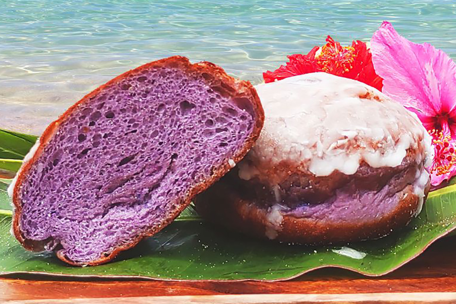 • 沖縄県にある「道の駅かでな」より。「Hungry Angry」の紅イモマラサダ(1個450円〜)ほか