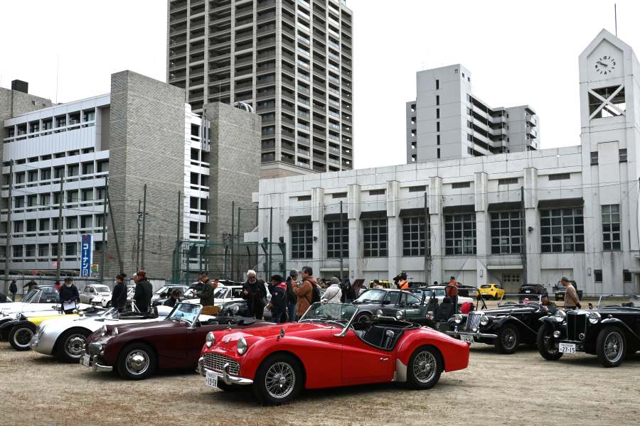 実際に、弁天町駅周辺には300を超える町工場がある。それら町工場の横のつながりを強化し、「町工場の技術を世界へ。」を発信する取り組みをおこなう「イノベーションポート200」は、今回の「べんてんひろば」再オープンのイベントと同日に、2025年11月に「べんてんひろば」で開催した「ガレージBENTEN」の第2弾を、弁天町駅をはさんだ「もと市岡商業高等学校跡地」で開催。現役のクラシックカーをずらりと展示した。