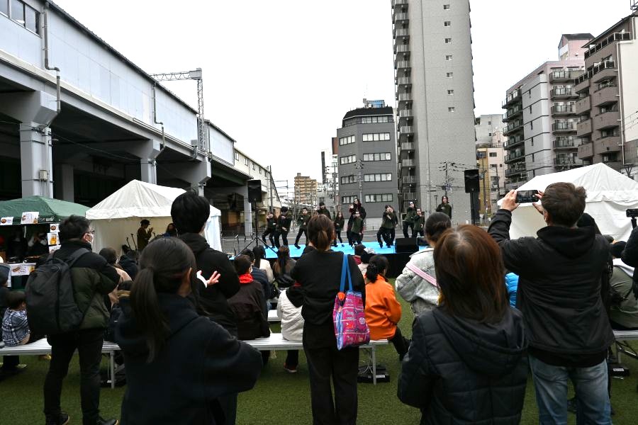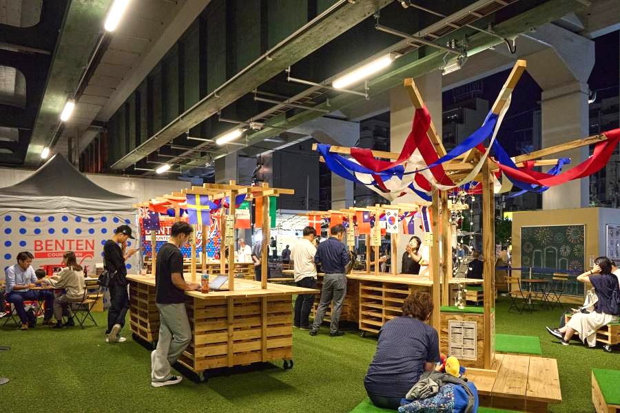 期間中は、高架下空間を黒板チョークアートで装飾したり、キッチンカーや仮設店舗による飲食イベント、音楽やダンスなどのステージイベント、人工芝を利用した運動会、相撲や空手、アニメやコスプレなど日本らしい文化をテーマにした企画も登場。2025年10月12日13日には、万博会場の近隣エリアで万博を盛り上げる『ウラ万博』ファイナルイベントと連動して『駅スポ べんてんフィナーレ』も開催した。
