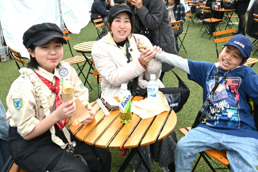 • 摂津から「若虎」のステージを見るために来場した親子は、食事やクレープも「おいしかったね!」と満喫(3月15日「あつまろう!べんてんひろば交流DAY」)