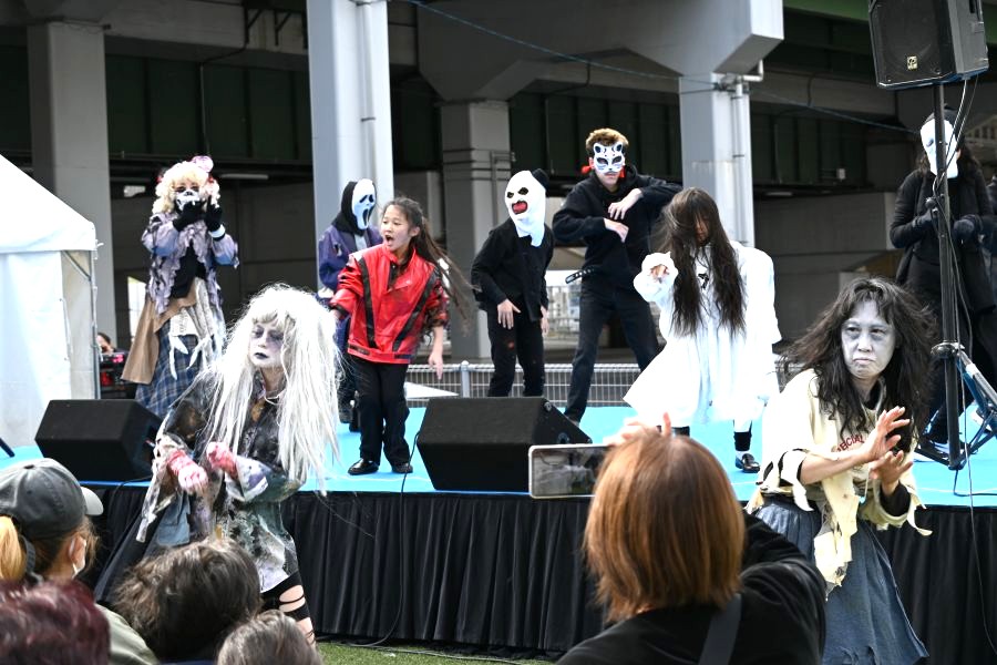 • マイケル・ジャクソン氏のスリラーを踊る「MJ関西」は、衣装やメイクにも力が入っていた(3月15日「あつまろう!べんてんひろば交流DAY」)