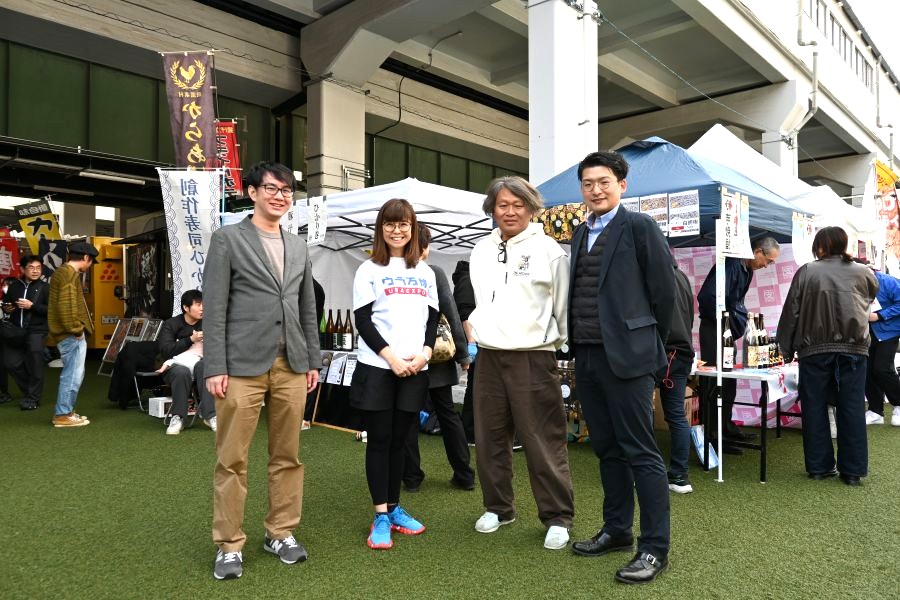 • 「弁天町を盛り上げたい!」左から大石さん(西日本旅客鉄道)、村田さん(イノベーションポート200)、浦田さん(大阪市高速電気軌道)牧さん(リンクコーポレーション)「弁天町エリアの魅力を高めていくためには、『べんてんひろば』のように発表したり活動したりする場所があることが強みになる」と浦田さん(3月15日「あつまろう!べんてんひろば交流DAY」)
