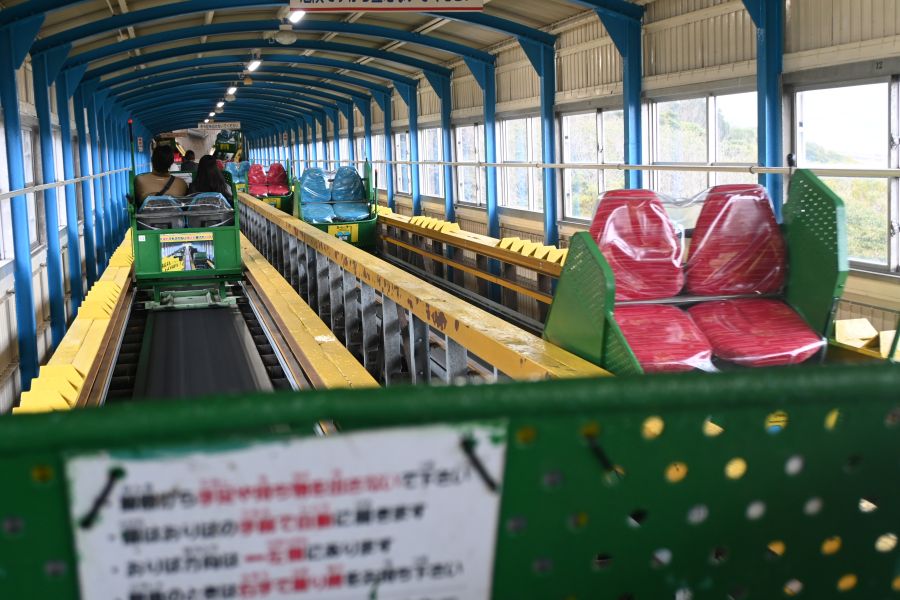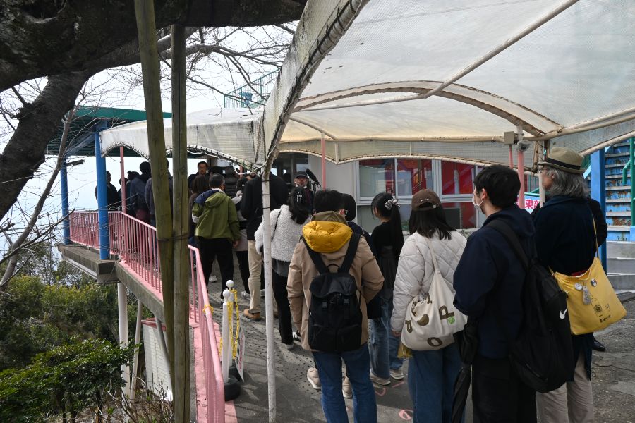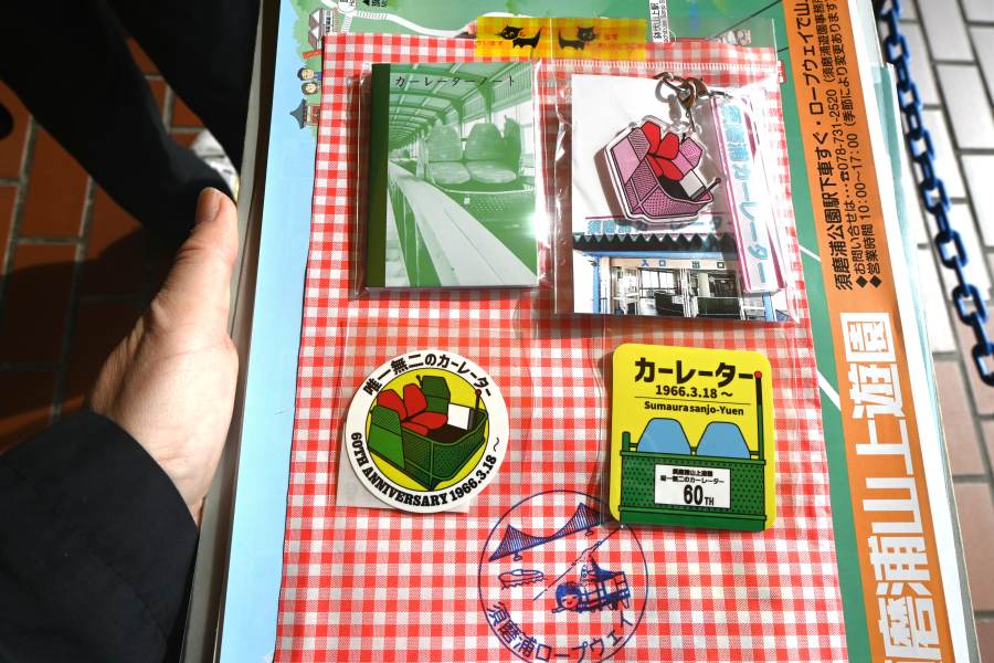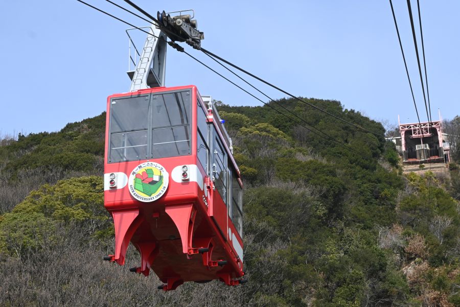 • 「須磨浦ロープウェイ」にも、カーレーターのヘッドマークが!赤いロープウェイの愛称は「やまひこ」(3月18日 Lmaga.jp編集部撮影)