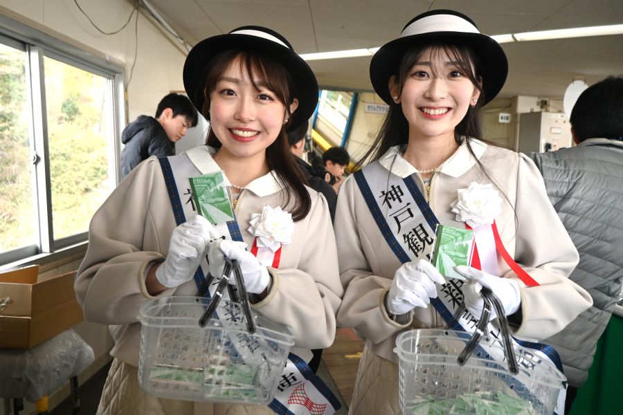 • 18日には神戸観光親善大使が、「カーレーター付箋」をプレゼント(3月18日 Lmaga.jp編集部撮影)
