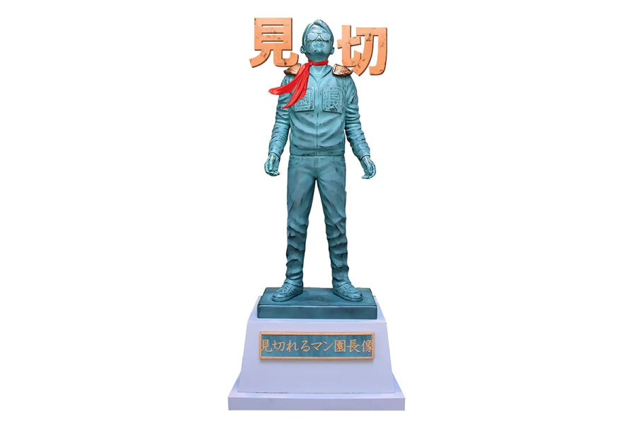 • 「ひらかたパーク」エントランスの園長像も「見切れるマン」園長像に