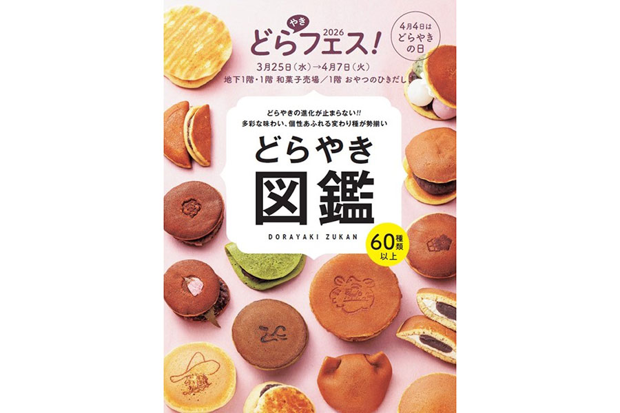 多様などらやきが集まるイベント『どらやきフェス!2026』が、3月25日よりJR大阪駅すぐの百貨店「阪神梅田本店」(大阪市北区)でスタート。王道から進化形まで60種以上が販売される。