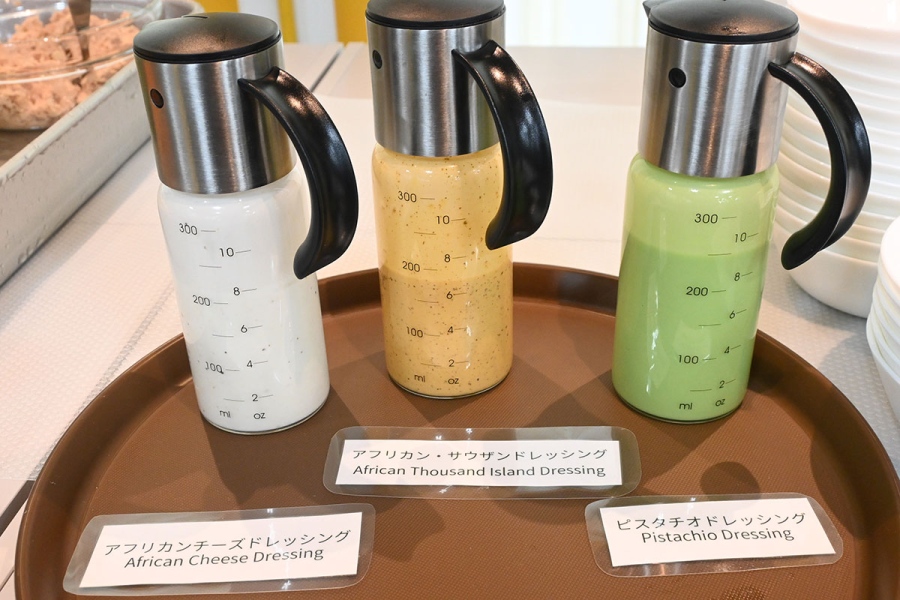 万博会場では月替わりのメニューが数種提供される形式だったが、新「PANAF’」ではさらにパワーアップ。アフリカ6地域の食文化を網羅したモダン・アフリカンメニューを、フードだけで70種超、ドリンクもPANAF’オリジナル含め40種超をラインアップする。この規模とメニュー数でアフリカ全土の食文化をカバーするレストランはアジアでほぼ初めてとのことだ。