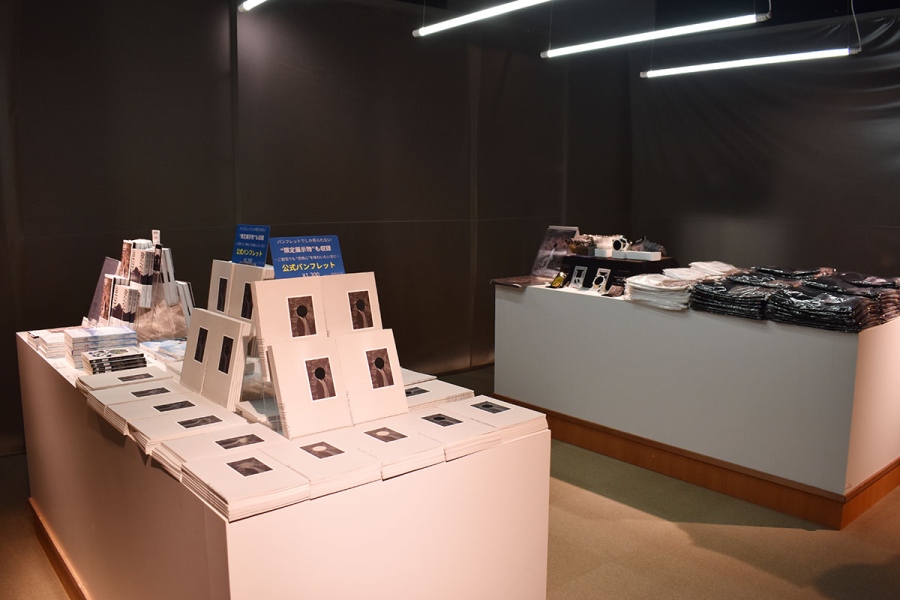展覧会のメインビジュアルをあしらったTシャツ(4000円〜)やステッカー(2種セット・800円)、パンフレット(1300円)、展示物の一部を楽しめるガチャ(1回100円)など、グッズも販売中だ。